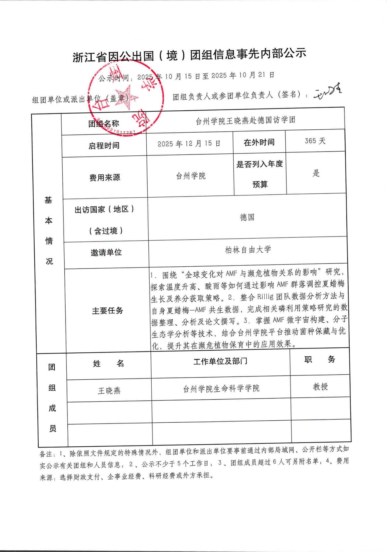 一、浙江省因公出国(境)团组信息事先内部公示